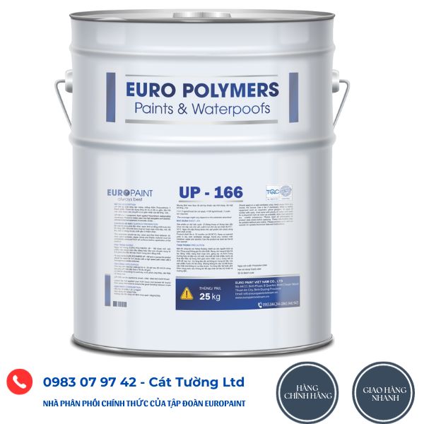 Europaint Polymers UP-166. Lớp phủ chống thấm 1 thành phần gốc Polyurethane. Với độ đàn hồi sau khi khô vô cùng xuất sắc và khả năng kháng tia Uv đã được test kiểm định. Sản phẩm được ứng dụng rộng rãi trong lĩnh vực chống thấm công trình xây dựng trên toàn thế giới và rất phổ biến trên thị trường Việt Nam hiện nay.